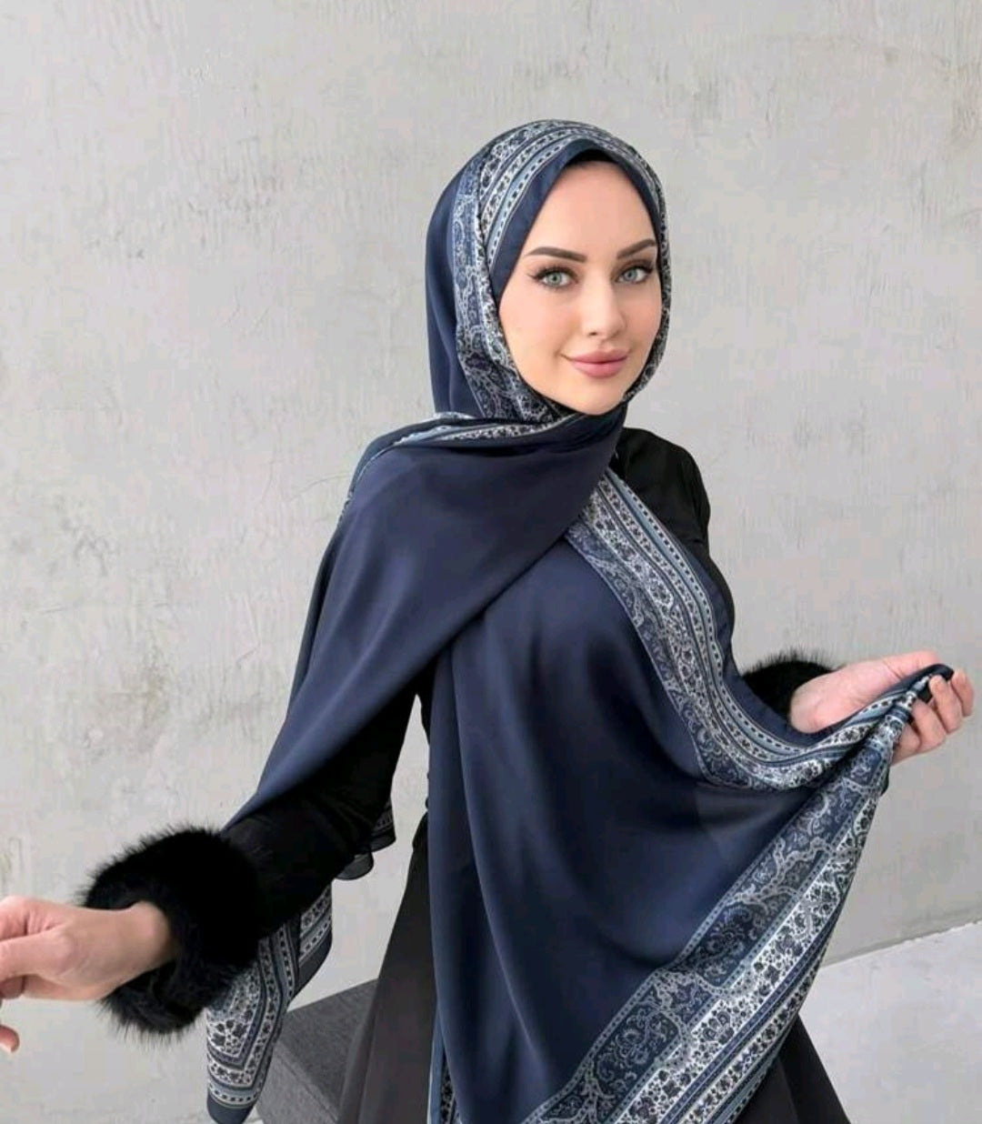 Navy Retro printed hijab